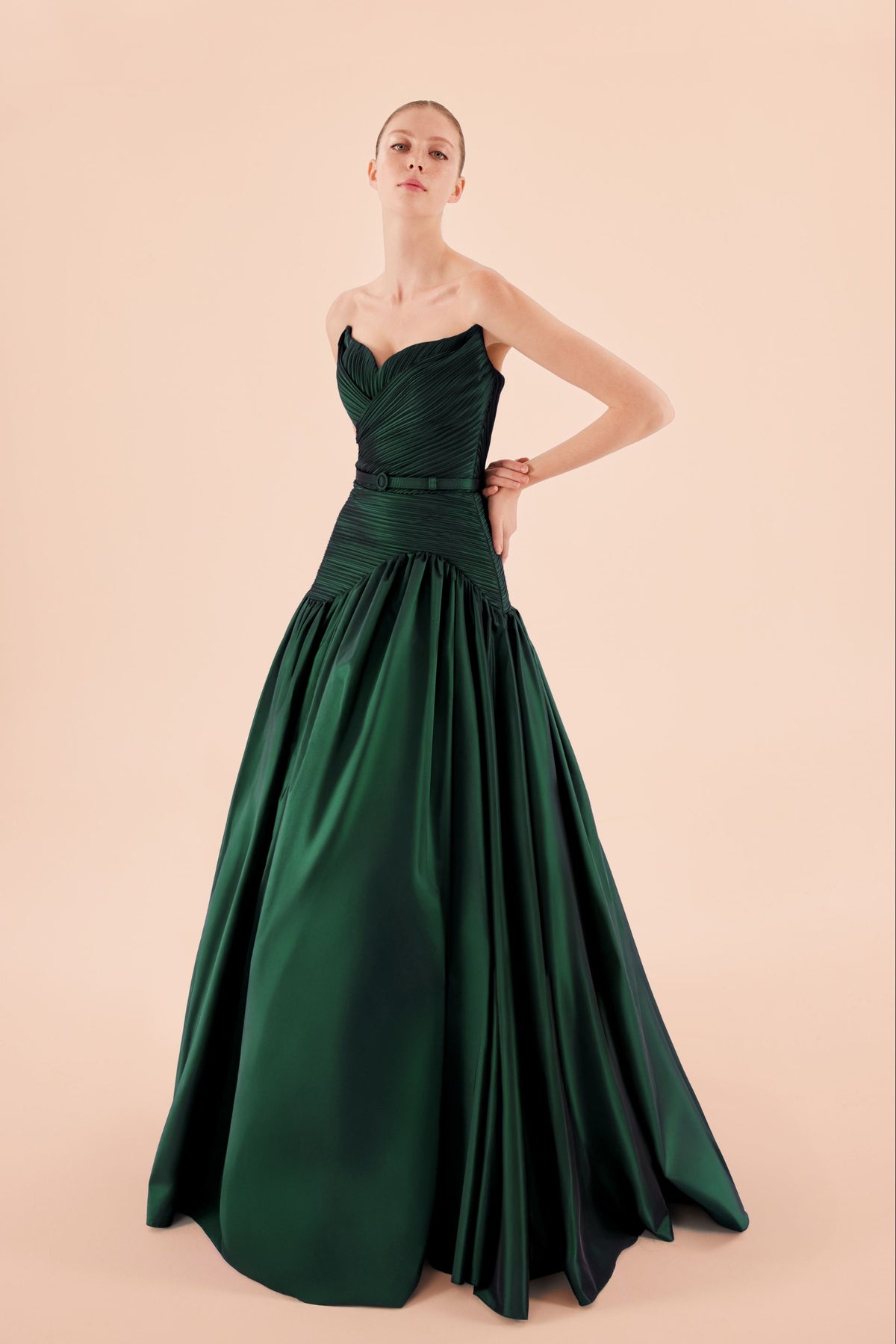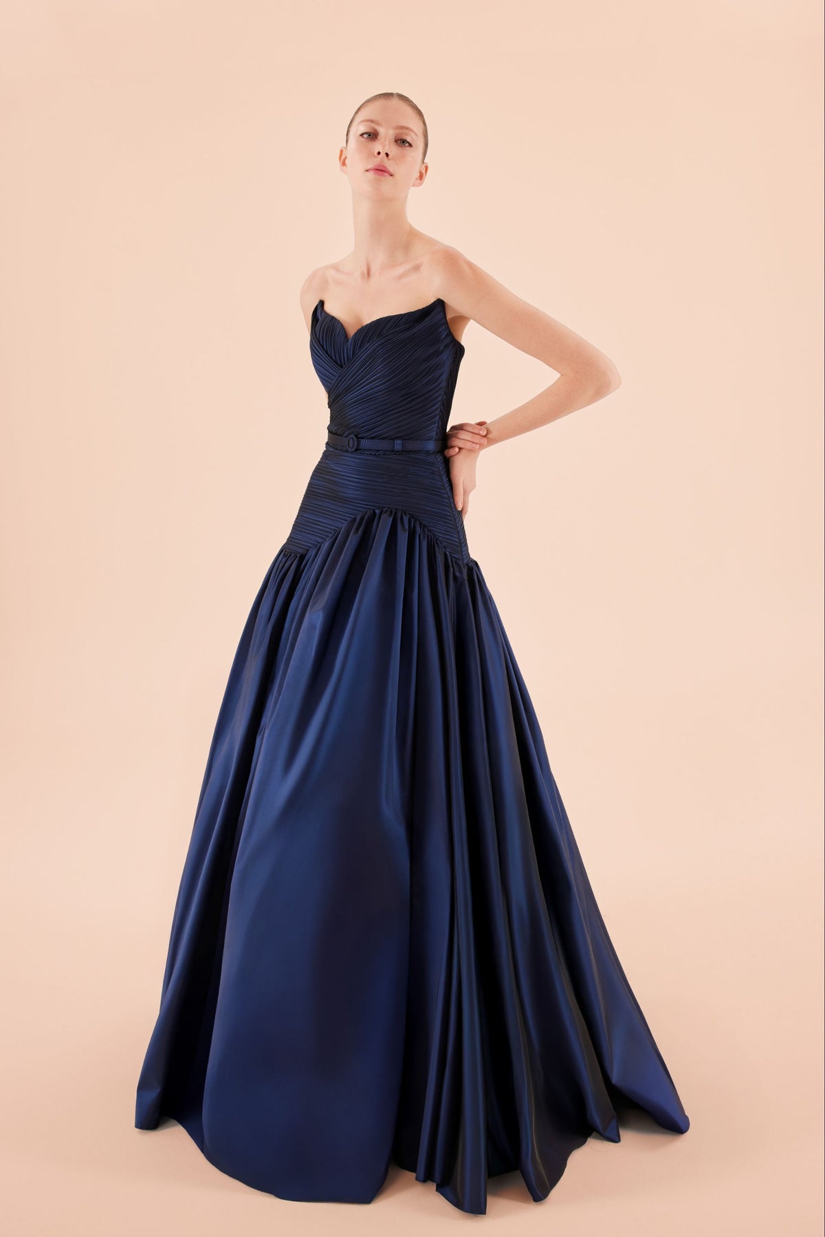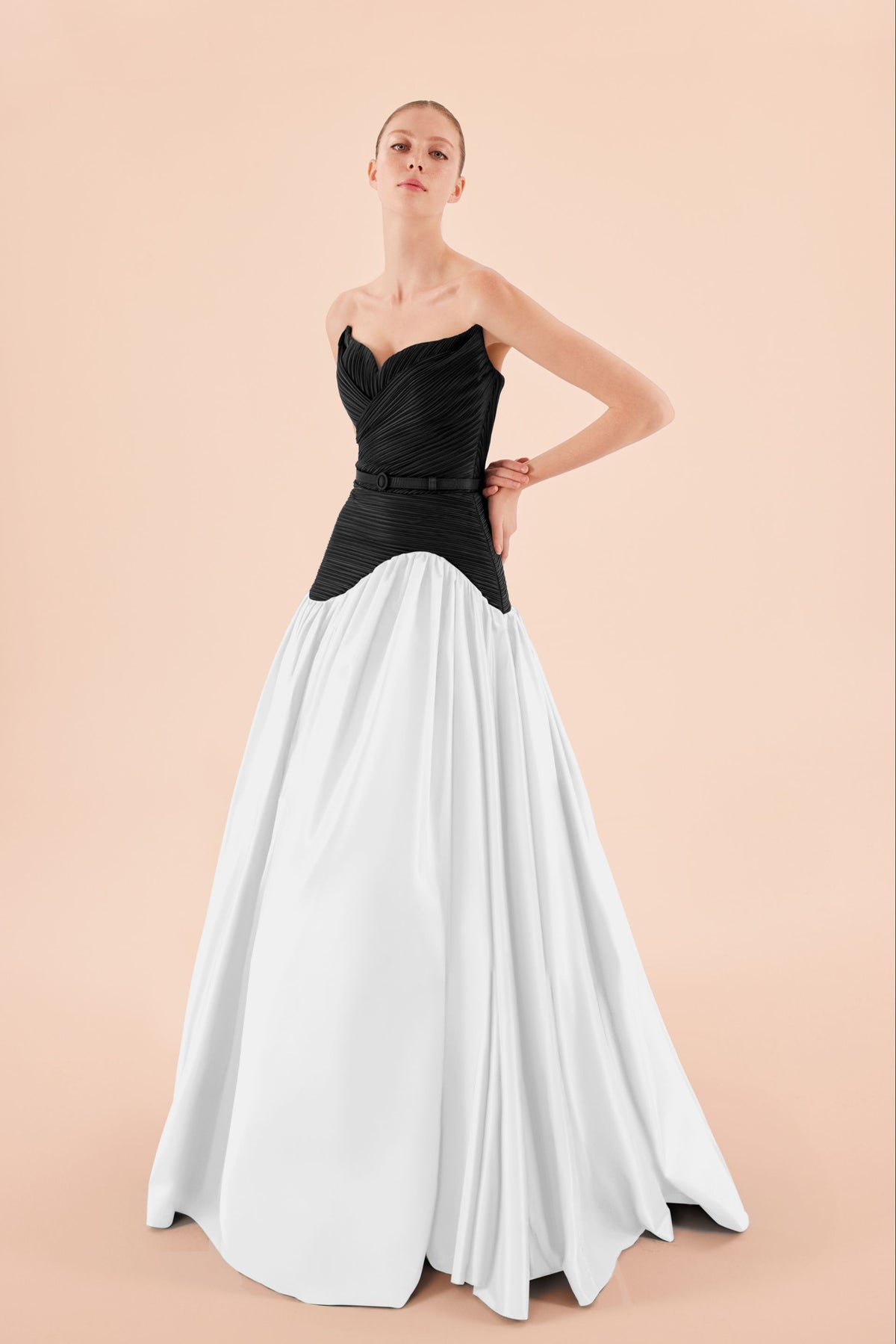 • Pileli korsajlı straplez üst, kalp yaka kesim